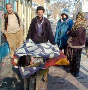 Erzurum Palandöken Mahallesi’nde ikamet eden ve işsiz bir babanın en küçük çocuğu olan 7 yaşındaki Metin Sarıer, enfeksiyon kapmaması için antibiyotik iğnesi yapılması için her gün eksi 30 derece soğukta el arabası üzerinde evlerine bir kilo