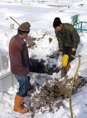 Gece eksi 25 dereceye kadar düşen hava sıcaklığı nedeniyle Erzurum’da toprak da dondu. Kazma ve küreklerle mezar açamayan işçiler, çareyi kompresör kullanmakta buluyor. Kompresörlerle mezar kazan Erzurum Büyükşehir Belediyesi işçileri, yazın yarım saat içerisinde kazdıkları bir mezarı şimdi 3-4 saatte ancak kazabildiklerini söylediler.