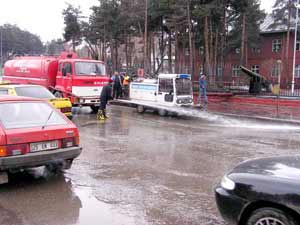 Büyükşehir Belediyesi İtfaiye Daire Başkanlığı ekipleri şehir merkezindeki tüm cadde ve sokakları tazyikli suyla yıkıyor.