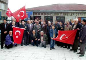 Gaziler, daha sonra "Türk bayrağına uzanan eller kırılsın" şeklinde slogan attı. Gaziler adına bir açıklama yapan Dernek Başkanı Salih Mesci, "Biz bu bayrak için canımızı, kanımızı verdik. Bayrağımıza hain gözle bakanın gözünü çıkarır, elini kırarız" dedi.
