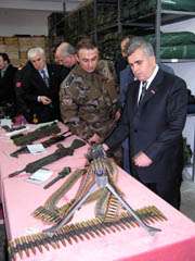 Sergiyi gezen Erzurum Valisi Mustafa Malay, silahları tek tek incelerken, yetkililerden bilgi aldı.
