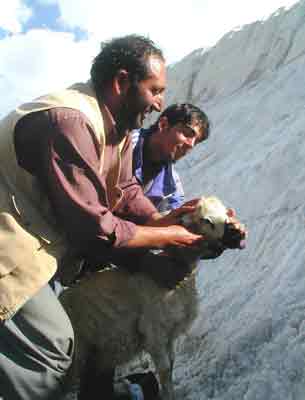 Yaklaşık 20 yıldır göçebe olarak yaşadığını belirten 40 yaşındaki Siverekli Ziya Çınar, "Bizim memleket şimdi sıcaktan yanıyordur. Urfa’da sıcak hayvanları hasta ediyor. Erzurum dağlarında ise halen kar var. Tuz yiyen kuzuları kar ile yıkayarak serinletiyoruz. Biz de kar yiyoruz" dedi.