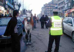 At sürücüsü Haytanın, "Böyle bir şey mi olur" sözlerine karşılık, duruma çözüm bulan polisler, atın cinsini öğrenerek, sahibinin kimlik bilgilerine 45 YTL 80 kuruş ceza kestiler.