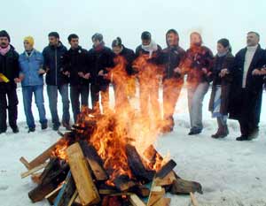 Demokratik Halk Partisi (DEHAP) İlçe Teşkilatının Kazım Yurdalan Mahallesi Eski Mal Meydanında düzenlediği kutlamalar, yoğun kar yağışı altında yapıldı. Polisin geniş güvenlik önlemi aldığı alandaki kutlamalara katılan vatandaşlar, Kürtçe şarkılar eşliğinde halay çekerek, ateş üzerinde atladı.