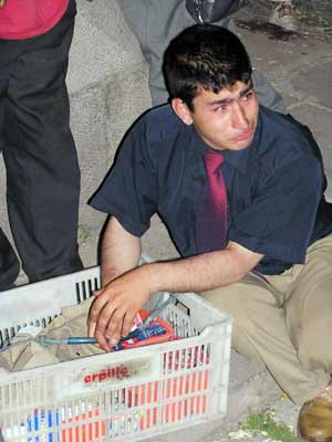 Erzurum'da düzenlenen halk konserini izleyen özürlü 17 yaşındaki seyyar satıcı, sahneye çıkıp türkü söylemesine izin verilmeyince sahne kenarında oturup dakikalarca ağladı. Kültür ve Turizm İl Müdürlüğü'nce dün akşam düzenlenen ve mahalli sanatçıların sahne aldığı konser alanında özürlü seyyar satıcı Mehmet Kaya'nın dramı konseri dinleyenleri de hüzünlendirdi.