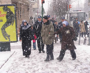 Sabahın ilk saatlerinde başlayan kar yağışı aralıksız devam ederken, kar yağışıyla birlikte şehir merkezindeki araç ve yaya trafiği güçlükle yapılabildi.