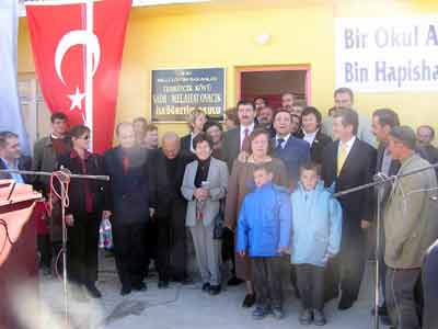Erzurum’da 25-28 Mart tarihlerinde yaşanan depremlerde okul binası yıkılan Tebrizcik Köyü’nde, iş adamı Celal Ergunlu ve eşi Handan Ergunlu’nun Mühürdar Lions Kulübü’nün destekleriyle yaptırdığı okul, törenle bugün hizmete açıldı. Köydeki öğrencileri tek tek giydiren Handan Engunlu, kendisinin Erzurumlu olmadığını ve İstanbul’da Erzurumlular sitesinde ikamet ettiğini belirterek, "Eşimle birlikte önce Van’da bir okul yaptırmayı planlıyorduk. Erzurum’da yaşanan deprem sonrası böyle bir teklif geldi. Biz de memnuniyetle kabul ettik. Okula anne ve babamız Saim ve Melahat Ovacık’ın adını vererek, onların isimlerini yaşatmak istedik" diye konuştu.