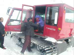 Pazartesi günü okulların açılacak olması dolayısıyla harekete geçen Köy Hizmetleri ekipleri, zaman zaman 4 metreyi bulan kar tepeciklerini güçlükle aşarak bugün köye ulaştı. Köyde snoowtracı alkışlarla karşılayan öğrenciler, daha sonra anne ve babalarıyla vedalaştı.