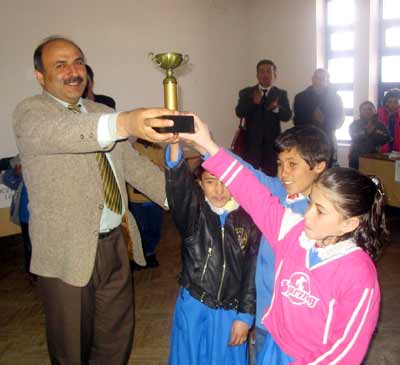 Öğrencilere birincilik ödülünü İlçe Milli Eğitim Müdürü Selami Avcı verdi.