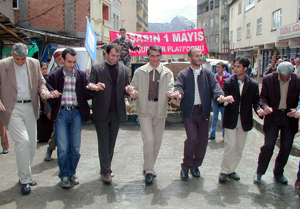 Hakkari’de ilk defa yapılan 1 Mayıs İşçi Bayramı, davul zurna eşliğinde halaylar çekilerek kutlandı.