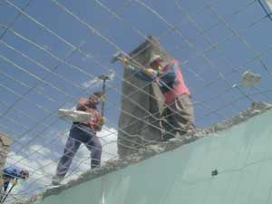Hakkari'de 25 Ocak 2005 tarihinde meydana gelen 5.5 büyüklükteki depremde hasar gören Hakkari Devlet Hastanesi eski bölümünün yıkım çalışmaları sürüyor. Yıkım çalışmalarında görev alan 10 işçi, hastanenin çatı bölümünü ellerine aldıkları balyozlarla yıkıyor.
