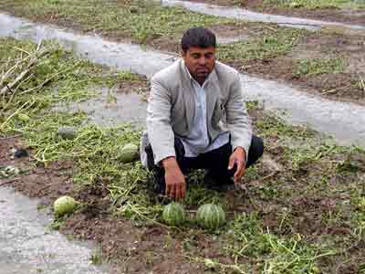 Iğdır ve çevresinde dün saat 16.00'da başlayan fırtınanın ardından yağan dolu Iğdır merkeze bağlı 9 köy, Karakoyunlu ilçe merkezi ve bağlı 5 köy olmak üzere toplam 15 yerleşim biriminde adeta afet yaşandı. Başta buğday, arpa, domates, kavun, karpuz, salatalık, elma, erik olmak üzere yaklaşık 50 bin dönüm ekili alan hasar gördü, sebze ve meyve bahçeleri yerle bir oldu.