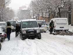 Kars’ta cadde ve sokaklarda biriken kar yığınları, araç sürücülerine zor anlar yaşattı. Rampayı çıkamayan birçok araç, vatandaşlar tarafından itilerek çıkartılmaya çalışıldı. Yolda kalan aracı sollayarak rampayı çıkmak isteyen tüp yüklü bir kamyonet ise, kaldırım kenarında bulunan taş yığınlarının içine girdi.