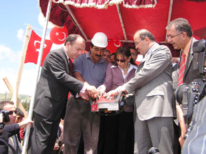 Törende daha sonra butona basılarak Kız Öğrenci Yurdunun temeline harç atıldı.