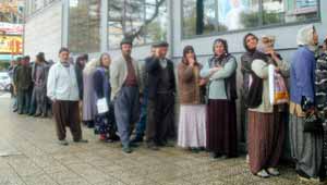 Malatya’da Ramazan ayı nedeniyle fakir vatandaşlara verilen 40 milyon lira tutarındaki yardımı almak isteyen vatandaşlar, banka önünde uzun kuyruklar oluşturdu.