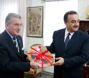 Akın, Borna kristal kayısı maketi, kayısı ve Malatya Belediyesi tarafından yayınlanan "Geçmişte Fotoğraflarla Malatya" isimli kitabı armağan etti. Başkan Akın, bu sırada Büyükelçi Borna kayısı hakkında bilgi verdi.