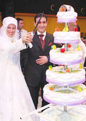 Düğün pastasının kesildiği ve oyunların oynandığı düğün, takı töreniyle sona erdi.