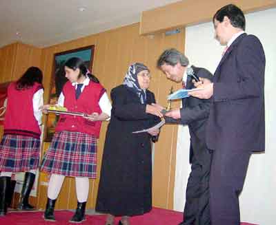 Belediye Konferans Salonu’nda düzenlenen törende, Malatya merkez Tecde Mahallesi’nde yaptırılan ilköğretim okuluna 80 milyar lira bağışta bulunması ve okula isminin verilmesi nedeniyle eğitim gönüllüsü Cahide Nebioğlu’na şilt verildi.