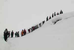 Kış mevsiminde 6 ay süreyle yolu kapalı olan köylerde, öğrenciler Pazartesi günü açılacak okullarına yetişmek için 9 saat dağ yolu kat ederek Muş’a vardılar.