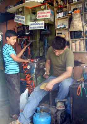 Mağazalarda 30 milyon liradan başlayıp 150 milyon liraya kadar yükselen ayakkabı fiyatları sebebiyle ayakkabı tamircilerinin işlerinde adeta patlama yaşanıyor. Masraftan kaçınan vatandaşlar yeni ayakkabı almak yerine eski ayakkabılarını tamir ettirmeyi tercih ediyor.