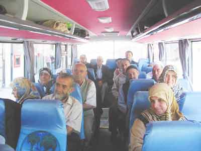 İlk kez tatile gönderilen çiftler otobüsle gidecekleri Sivas’a uğurlandılar.