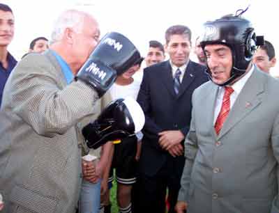 Gençlik ve Spor İl Müdürlüğü bünyesinde basketbol, futbol, voleybol, güreş, kayak, atletizm ve boks gibi spor dallarından yaklaşık 300 sporcunun da katıldığı malzeme dağıtım töreninde Vali Yıldırım Kartal, özellikle boks malzemeleri ile ilgilendi. Bir ara boks eldivenleri takan Vali Kartal, Gençlik Spor İl Müdürü Hıdır Kalay’a nasıl yumruk atılacağını gösterdi. Vali Kartal, "Yaşlı olmama rağmen halen formundayım" diye konuştu.