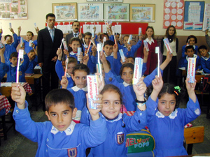 Sağlık Bakanlığı ve Milli Eğitim Bakanlığı’nın ortaklaşa başlattıkları "Avrupa’da Sağlığı Geliştiren Okullar Ağı Projesi" kapsamında, Kızılay Muş Şube Başkanlığı tarafından pilot okul olarak seçilen Yavuz Selim İlköğretim Okulu öğrencilerine diş fırçası ve macunu dağıtıldı.