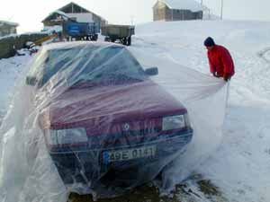Soğuk havalar sürücülere de oldukça sıkıntı oluşturuyor. Soğukların araç yakıtlarını dondurması sebebiyle altında ateş yakarak çalıştıran bir çok sürücü, sabah araçlarını rahatlıkla çalıştırmak için gece araçlarının üzerini naylonla kapatıyorlar.