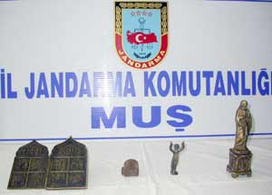 Muşta jandarma ekipleri tarafından piyasa değeri yaklaşık 500 milyar lira olan tarihi eserler ele geçirdi.