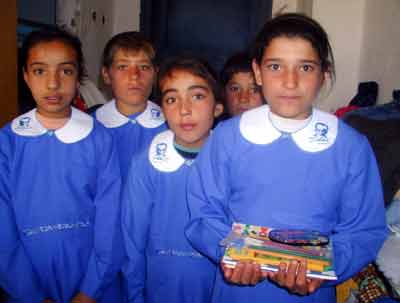 Rizenin Güneysu İlçesinde ki Ulucamii İlköğretim Okulu tarafından kardeş okul olarak kabul edilen Bingöldek Köyü İlköğretim Okuluna gönderilen kırtasiye malzemeleri, öğrencilere büyük sevinç yaşattı. Önlük, kalem, defter, silgi, boya kalemi, kalemtraş ve sulu boyadan oluşan yaklaşık 2 milyar lira değerindeki kırtasiye malzemelerini alan öğrenciler, ilk kez önlük giymenin de sevincini yaşadı. 4. sınıfa gittiğini ve ilk kez önlük giydiğini anlatan Hülya Polat, "Ben bugüne kadar hiç önlük giymemiştim. Öğretmenimiz bize kırtasiye malzemesi getirtti ve biz de yardımlarımızı aldık. Çok mutluyuz" dedi.