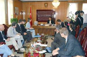Bölgede yaşanan sorunları yerinde tespit etmek üzere dün Elazığa gelen 20 kişilik AB müsteşarlar heyeti, bugün Tunceliye geçti. Temaslarına önce cem evini ziyaret ederek başlayan müsteşarlar, burada cem evinin çalışmaları hakkında yetkililerden bilgi aldı. Heyet, daha sonra Tunceli Valisi Mustafa Erkalı makamında ziyaret etti. Bölgede başlayan yeni operasyonlara ve köye geri dönüşlere ilişkin Erkala sorular yönelten heyet, ABye girmek isteyen Türkiyeyi yakından takip ettiklerini ve sorularında art niyet aranmaması gerektiğini söyledi.