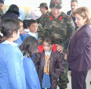 Yardım dağıtımında Vali Erkal, Tümgeneral Osman Eker ve eşleri ile Tuğgeneral Süha Tanyeri, öğrencileri bizzat giydirdi. Burada, oğlu dağda olan yoksul bir vatandaş, yardımını İl Jandarma Komutanı Kurmay Albay Namık Dursundan alırken, aralarında ilginç bir diyalog yaşandı.