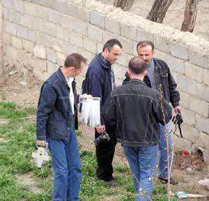 Polis ekipleri, çevrede geniş güvenlik önlemleri alındıktan sonra, bahçe duvarının kenarındaki beyaz ve siyah renkli poşetler içerisinde inceleme yapıldı.