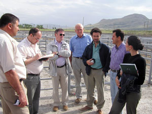 AB ile Tarım ve Köyişleri Bakanlığı’nın şap hastalığı uzmanları Doğu’daki hayvan hastalıkları ile ilgili incelemelerde bulunmak üzere Van’a geldi. Tarım İl Müdürlüğü’ne ait özel bira araçla Van Belediyesi’ne ait Sıhke Gölü kıyısında bulunan Hayvan Pazarı’na gelen 2’si Türk, 6 kişilik heyet burada Veteriner Gürgin Bilici’den bilgi aldı.