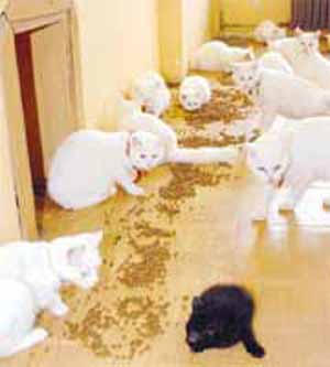 Van Kedisi Araştırma Merkezi’nde ‘Mahmure’ adlı kedi, 1.5 ay önce beyaz ve siyah renkli ikiz yavru dünyaya getirdi. Siyah renk ve gözlere sahip olan yavru ile beyaz ikizinin gözlerinin tek renk olması dikkat çekti. Araştırma merkezindeki Van kedileri, siyah yavruyu sürekli dışlıyor. Yemeklerini paylaşmıyor, fırsat buldukça da patilerinin hedefi haline getiriyorlar. Siyah yavruyu merkezin bakıcısı özel olarak besliyor.