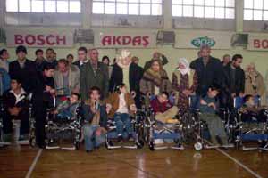 İskele Caddesi üzerinde bulunan Gençlik ve Spor İl Müdürlüğü salonunda düzenlenen törende konuşan Dernek Başkanı Abidin Kasapoğlu, törene protokolden kimsenin katılmamasının bedensel engelliler ve ailelerini üzmemesi gerektiğini söyledi. Kasapoğlu, "Protokolden kimse gelmedi diye sakın üzülmeyin. 3 Aralık Dünya Özürlüler Günü dolayısıyla Ankara’ya gittim, orada da kimse bizimle ilgilenmedi. Onların canları sağolsun. Biz zaten devamlı boynu bükükleri oynuyoruz. Bizi her sene unutmadan hatırlayarak tekerlekli sandalye gönderen Zekai Erez’e teşekkür ediyorum. Geçen yıl 90 adet, bu yıl ise 100 adet sandalye yolladı. Bu bize yeter" diye konuştu.
