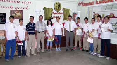 Dereceye giren öğrencilere Okul Müdürü Kambay tarafından teşekkür belgesi ve birer gül verildi.