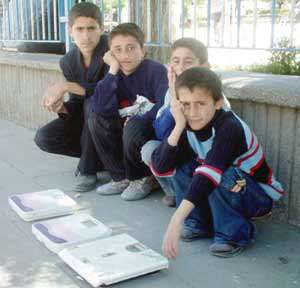 Van Valiliği önündeki kaldırıma elektronik tartı aletlerini bırakan çocuklar, şimdiden gelecek eğitim-öğretim yılı için okul harçlıklarını çıkarmak ve aile bütçelerine katkı sağlamak için mesaiye başladı.