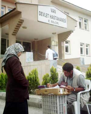 Van'da Yunus Kırmızıaltın isimli vatandaş, 3 yıldır okuma-yazma bilmeyenlerin yeşil kart formlarını doldurarak ekmeğini kazanıyor.