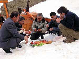 Bu arada, kar çalışmaları görüntülemek için bölgeye giden basın mensupları beraberlerinde getirdikleri domates, salatalık ve ekmeği işçilerle birlikte yedi. Her tarafın karla kaplı olduğu bölgede su olmayınca işçiler, getirilen sebzeleri karla yıkadıktan sonra gazetecilere ikram etti.