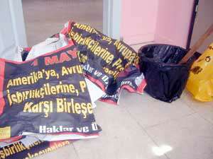 Gece geç saatlerde devriye görevi yapan Afyonkarahisar Emniyet Müdürlüğüne bağlı ekipler, öğrencilerin yoğun olarak bulunduğu Yeşilyol Caddesinde duvarlara izinsiz afiş yapıştıran Mevlüt Bayram (25) ve Afyon Kocatepe Üniversitesi (AKÜ) öğrencisi Gülbahar Duyanı (19) gözaltına aldı. Afişlerin üzerinde, "1 Mayısta Amerikaya, Avrupaya, işbirlikçilerine, provokasyonlara karşı birleşelim" ifadelerinin yer aldığı belirlendi.