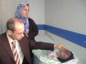 Bugün sabah saatlerinde ailesi tarafından AKÜye bağlı Pembe Hastaneye getirilen minik bebek, Beyin Cerrahı Olcay Eser tarafından kontrolden geçirildi.
