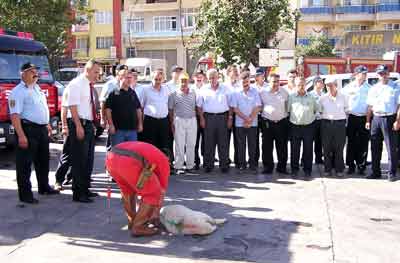 Törene katılan protokol ve basın mensuplarına kahvaltı veren Aydın İtfaiye Teşkilatı adına konuşan İtfaiye Müdürü Serdar Adanır, her gün ölümle burun buruna yaşadıklarını belirterek, "Aydın’da son 40 gün içerisinde 5 büyük ev yangını, bir tren kazası ile bir tüp deposu yangını yaşadık. Karşılaştığımız tüm olaylarda görevimizi başarıyla yerine getirdik. Çok tehlikeli olmasına rağmen son 40 gün içinde yaşadığımız olayları can kaybı olmadan atlattık. Bu vesileyle yani alınan itfaiye araçları için de bir kurban kesip lokma hayrı yapmak istedik" dedi