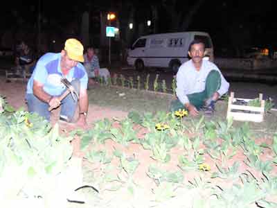 Meydanda verilen konserler sırasında ezilmemesi için sökülen çiçekler, belediye bahçıvanları tarafından sabaha kadar yeniden dikildi.