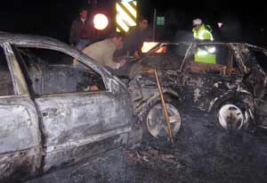 Çarpışmanın etkisiyle Kemal Yakışıklı idaresinde LPGli oto aniden alev aldı. Yangının büyümesi sonucu alevler diğer araca da sıçradı.