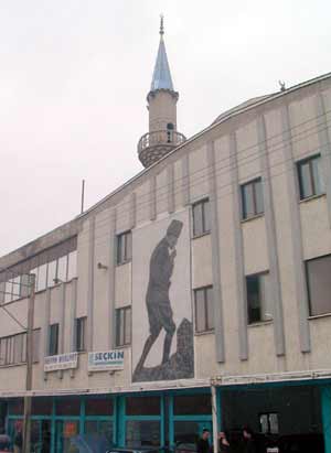 Denizli Belediye Meclisinin kamulaştırma kararıyla yeşil alan olarak düzenlenecek bölgede kalan İbadullah Camiinin bulunduğu mülkün sahibi Mehmet Ali Palayın, Atatürkün Kocatepeye çıkışını tasvir eden büyük resmini, caminin İzmir Asfaltına bakan duvarına mozaikle işlettiği ileri sürüldü.