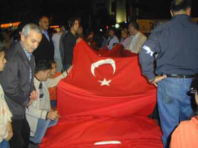 Cumhuriyet’in 81. yıl dönümü kutlamaları çerçevesinde düzenlenen Fener Alayı bitiminde, 500 metre uzunluğundaki bayrağın belli bir kısmını yerde toplamaya çalışan kişilere bazı vatandaşlar tepki gösterdi. Saygısızlık yapıldığını söyleyen vatandaşlar, bayrağın yerden kaldırılıp havada toplanmasını istedi. Bayrağı yerden kaldıran vatandaşlar bayrağı daha sonra havada topladı