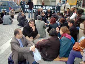 Kamu Emekçileri Sendikaları Konfederasyonu’na (KESK) bağlı Eğitim-Sen Sendikası’nın kapatılması davasını protesto eden Eğitim-Sen üyeleri oturma eylemi yaptı.