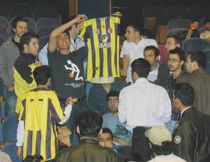 Kendilerine söz hakkı verilmediğini iddia eden Fenerbahçeli öğrencilerin, "Fenerbahçe formasından rahatsız oluyor musunuz? Siz gelmeden üzerimizdeki formaları çıkarttılar" şeklindeki sorusuna, "Ben rahatsız olmam. Ancak formayla buraya gelmek belki birkaç arkadaşınızı rahatsız edebilir. Bu konuda kutuplaşma yapmamak lazım. Önemli olan Fenerbahçe, Beşiktaş, Galatasaray, Denizlispor, Trabzonspor seyircisi değil, futbol seyircisi olmaktır" yanıtını verdi.