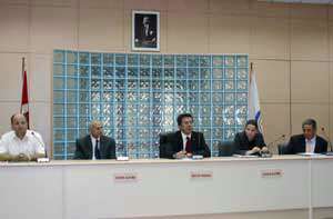 Denizli Belediyesi meclis salonunda düzenlenen toplantıya, Denizli Belediye Başkanı Nihat Zeybekci, meclis üyeleri Şahin Öztürk, Fevzi Özdemir ve makine mühendisi Rıza Demirhan ve kömür ticaretiyle uğraşan 100 işyeri sahibi katıldı.